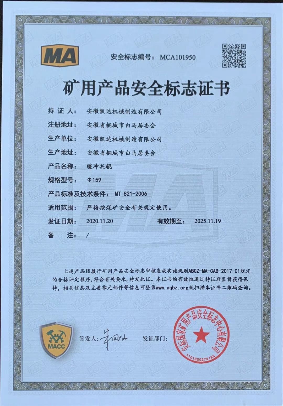 矿用产品安全标志证书-缓冲托辊4