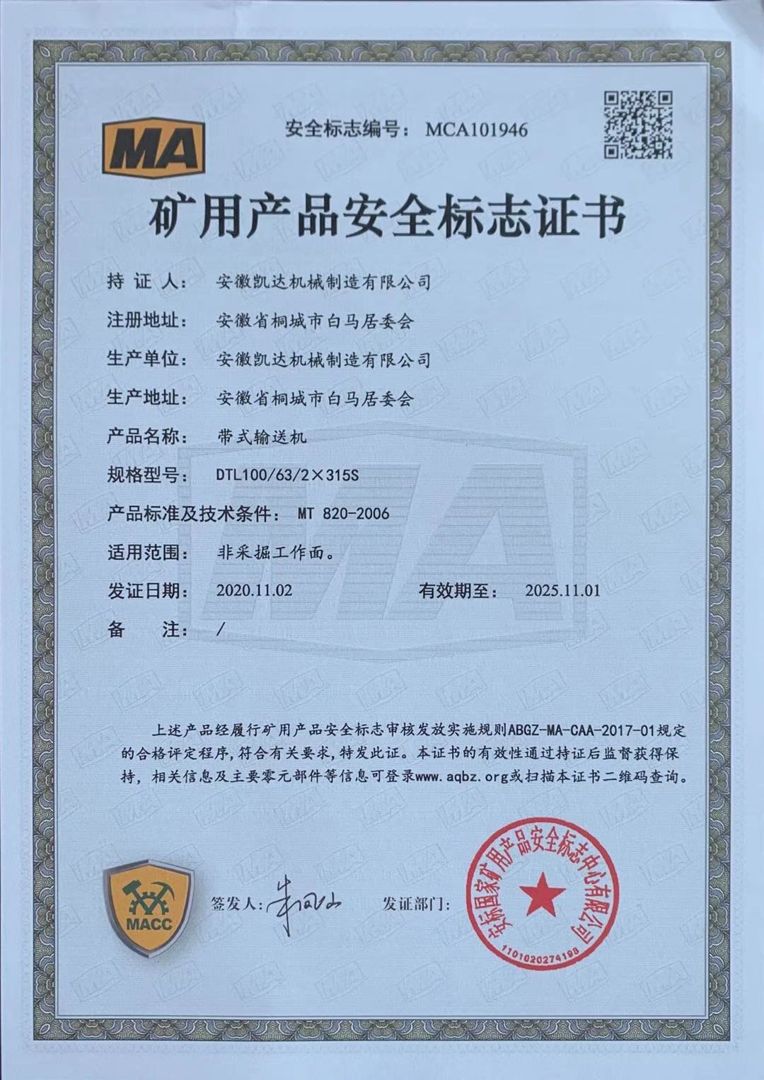 矿用产品安全标志证书-带式输送机35