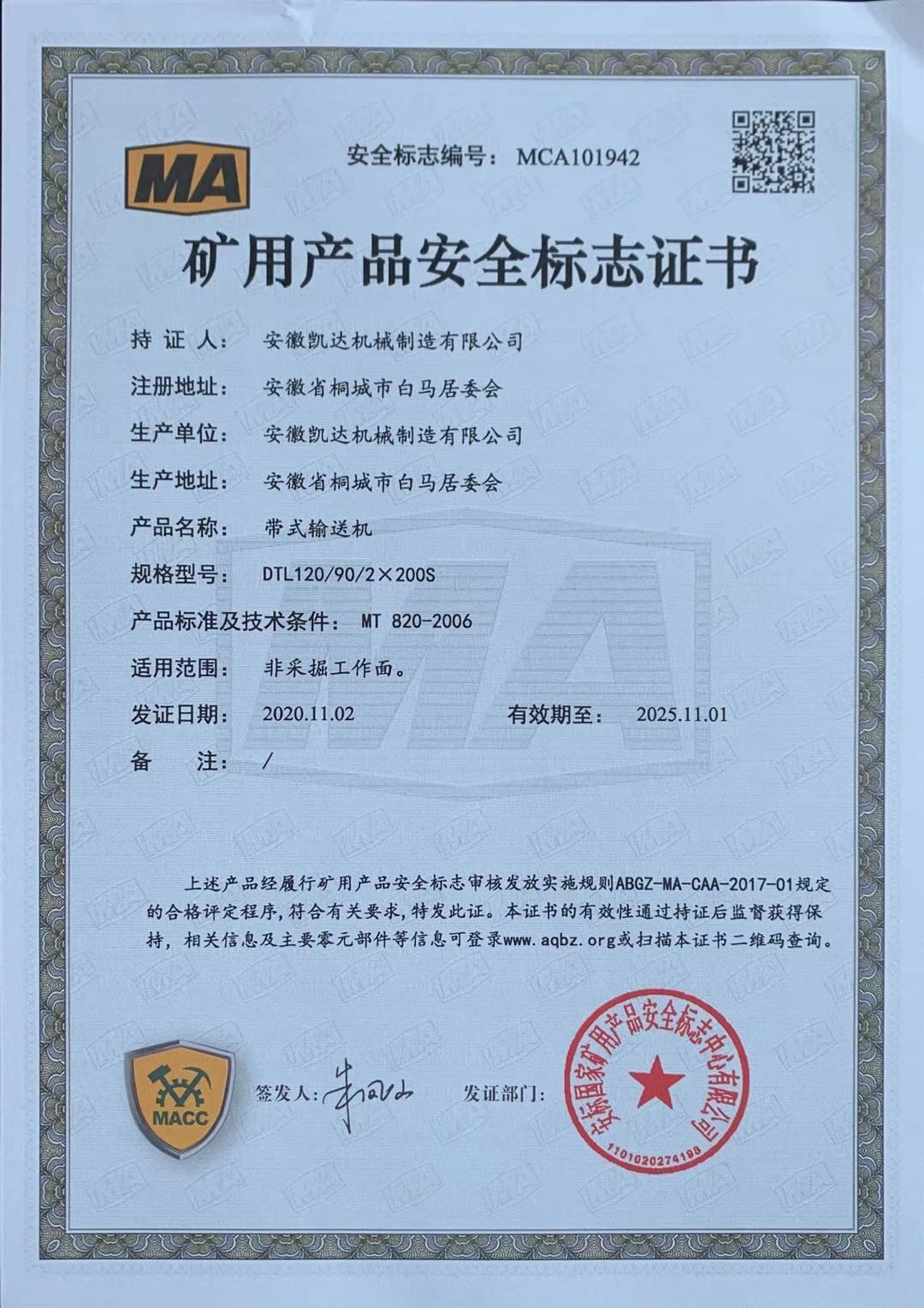 矿用产品安全标志证书-带式输送机31