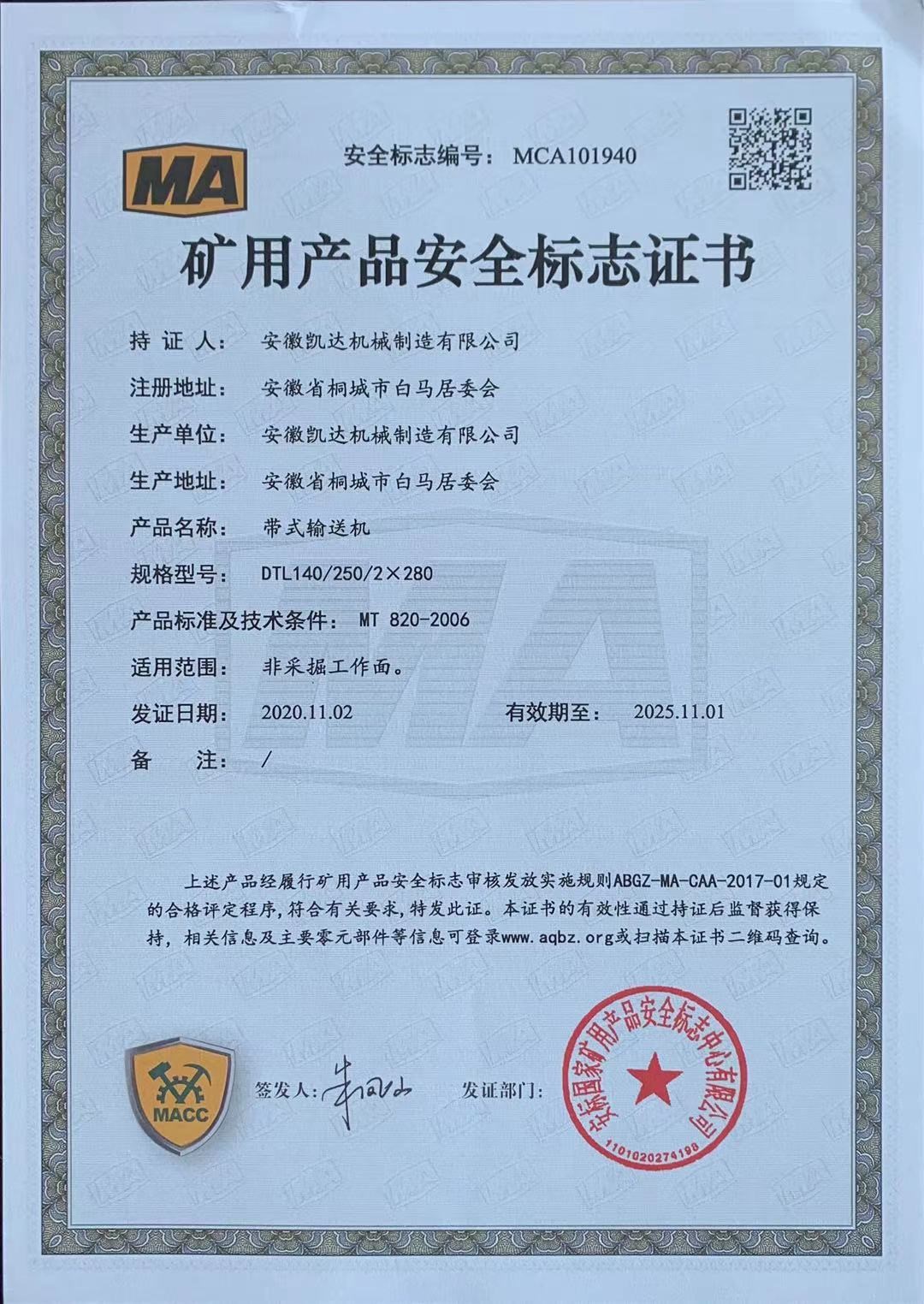 矿用产品安全标志证书-带式输送机29