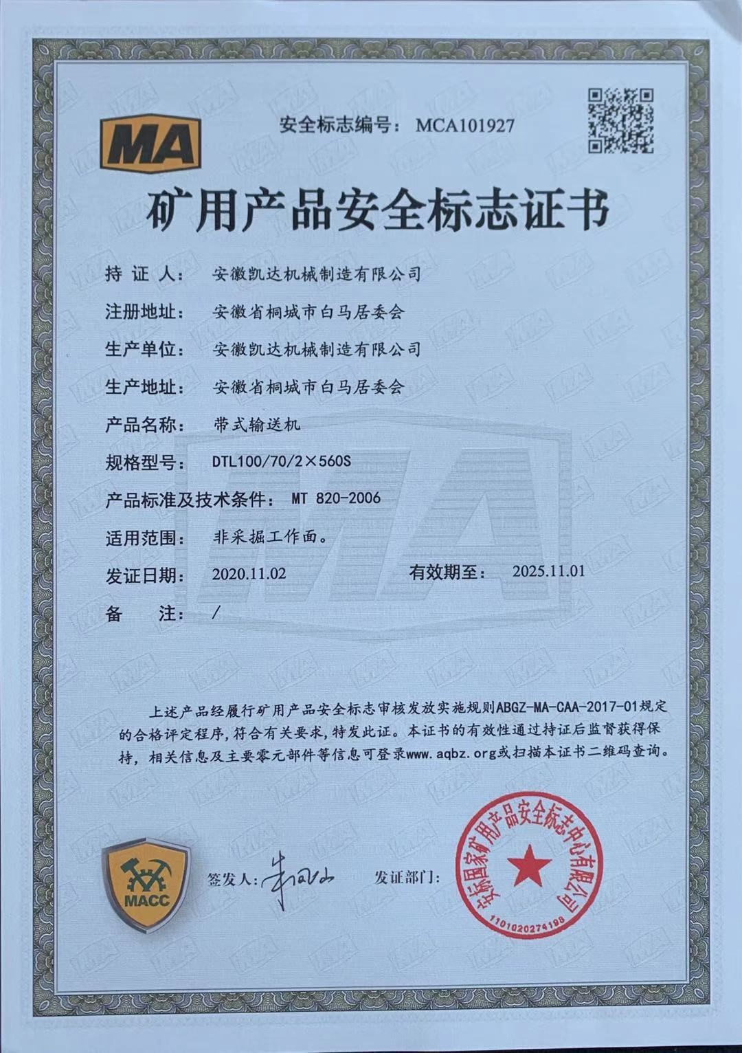 矿用产品安全标志证书-带式输送机16