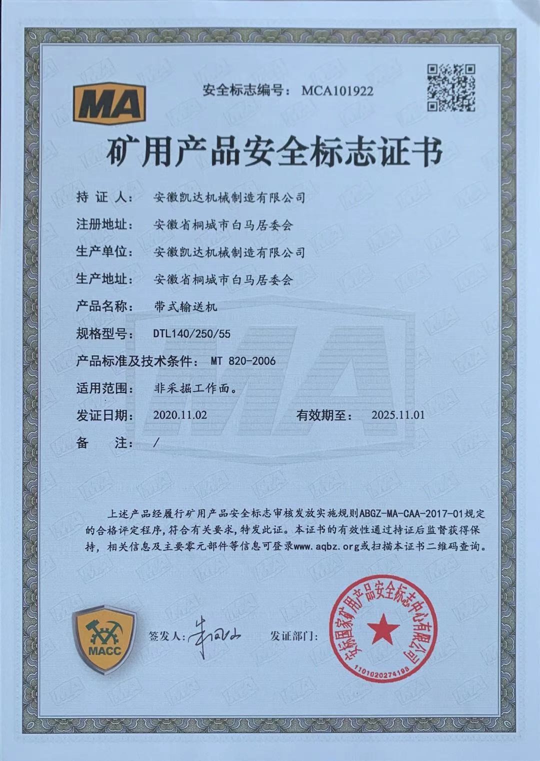 矿用产品安全标志证书-带式输送机11