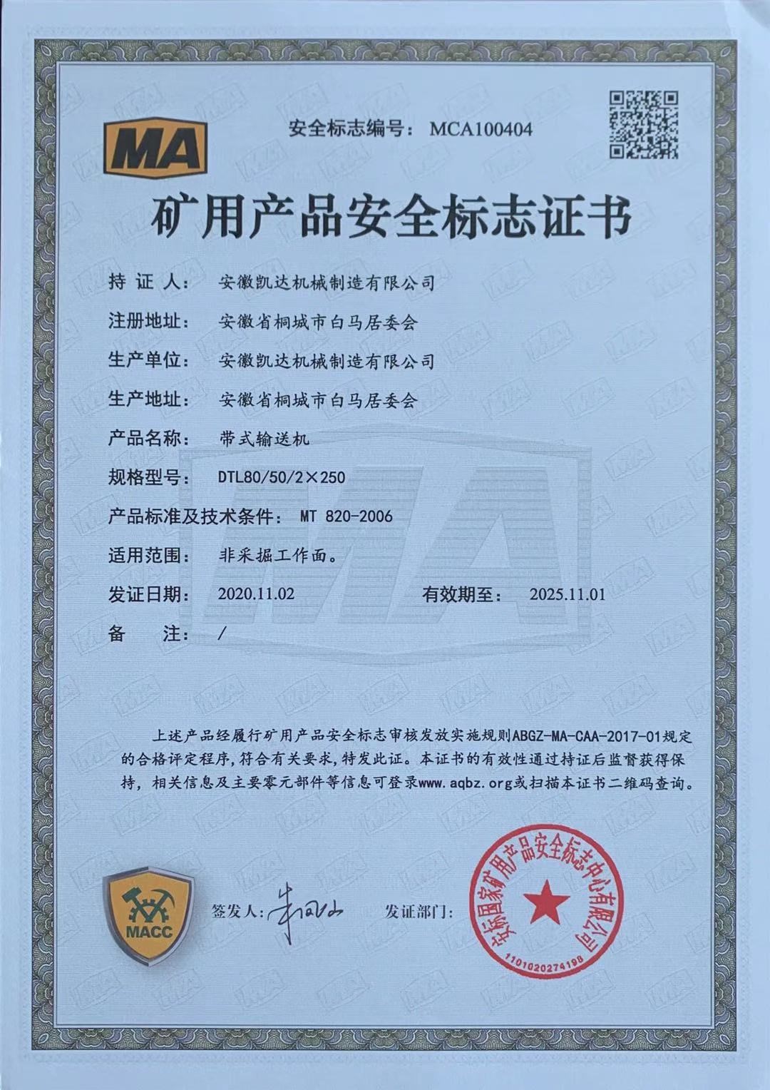 矿用产品安全标志证书-带式输送机7