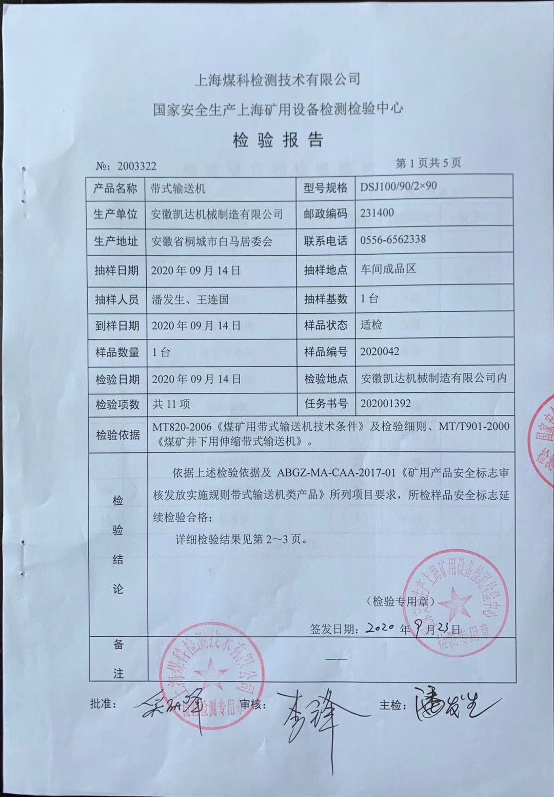 2020检验报告 - 带式输送机DSJ100-90-2X90