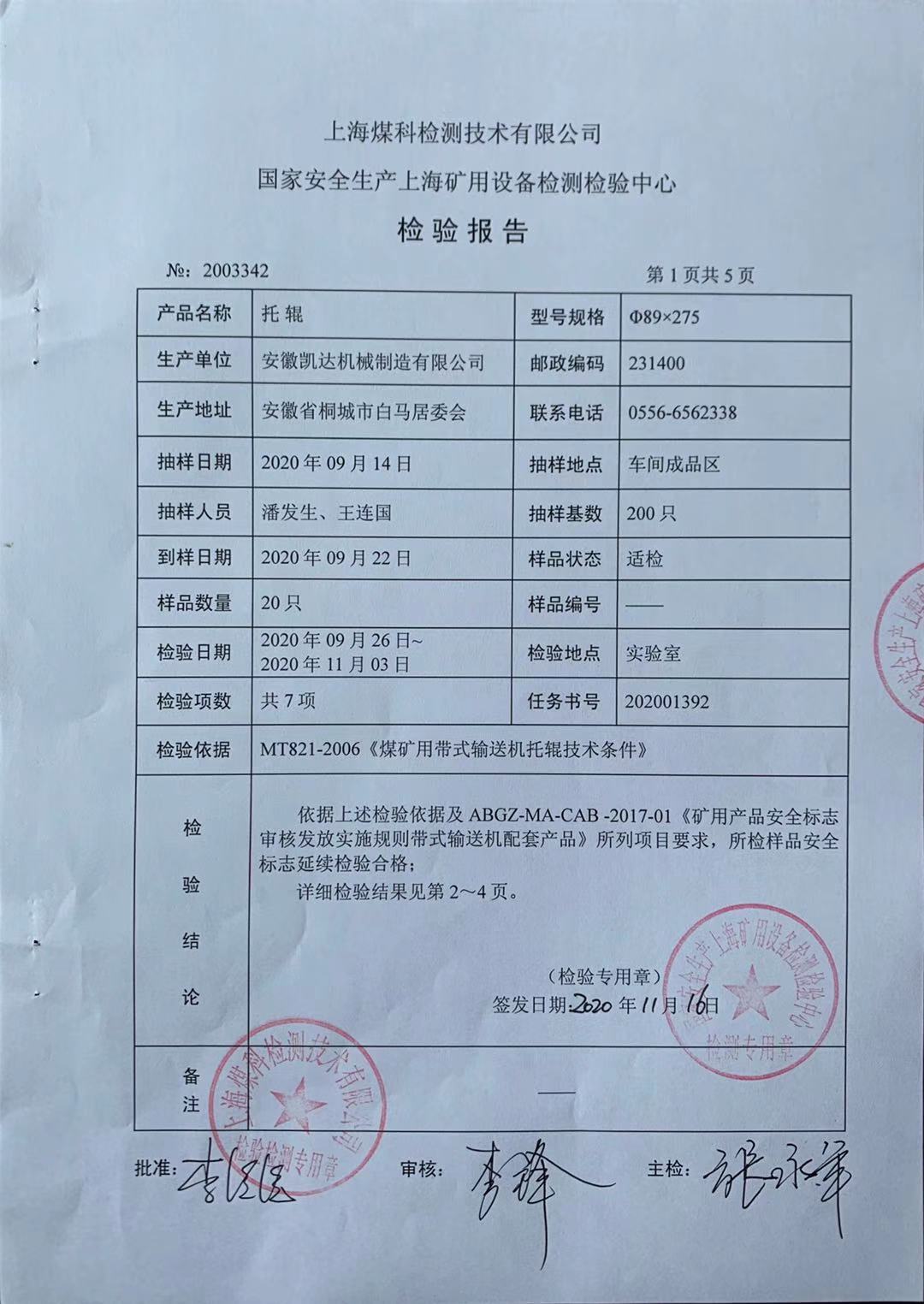 2020检验报告 - 托辊89X275